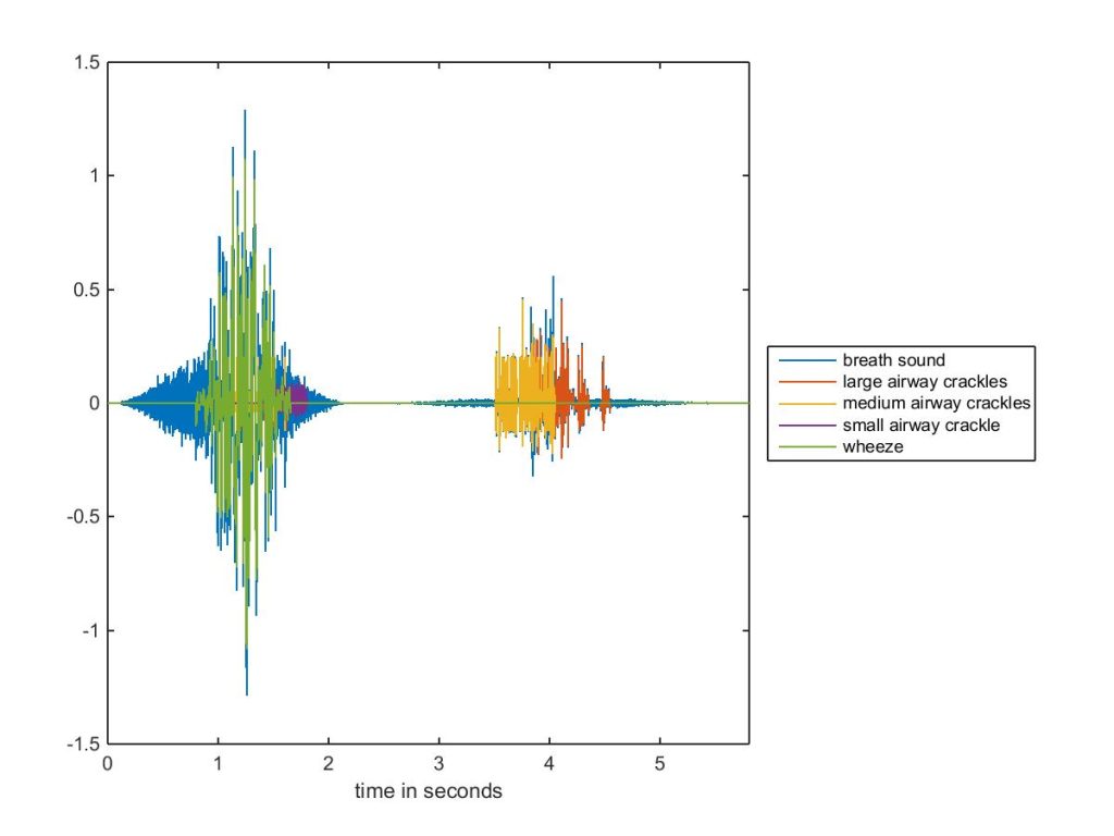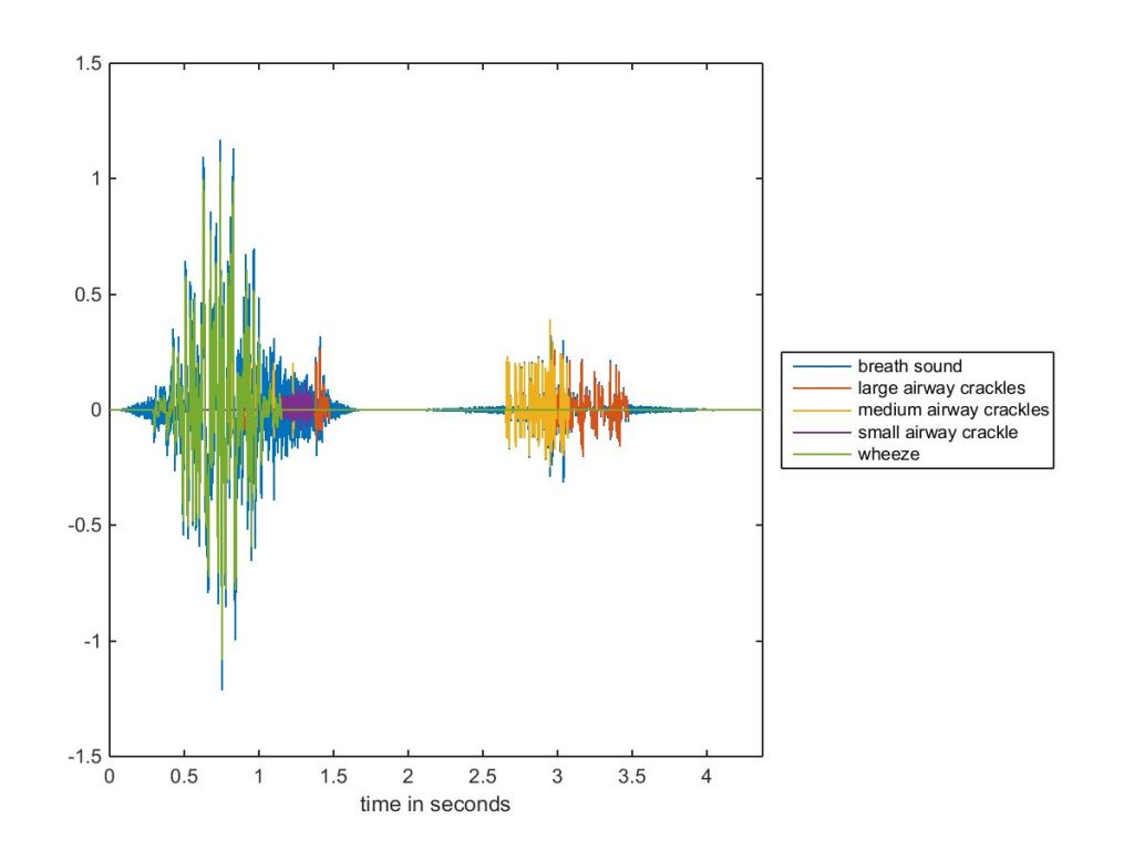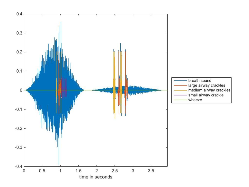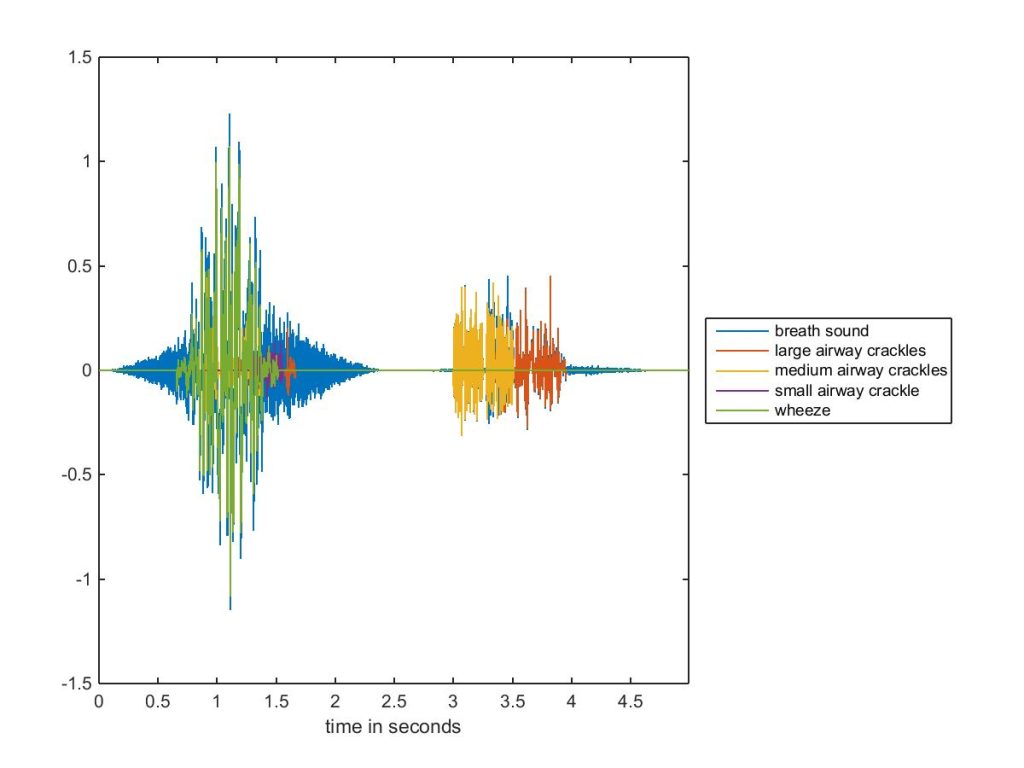 The following four audio files are extracted from breath sounds which were generated by a computer model simulating inhalation of opium smoke. Each file depicts one breath cycle. We developed the model for a sound installation titled Labour Lung (2021). The simulation model adopts algorithmic methods of calculation used in biomedical engineering and predictive pathology. But to arrive to this model, we first had to know the properties of opium smoke aerosol, its average particle size distribution and spray velocity. We took an opium pipe and some opium to a laboratory in North Holland to measure this. The pipe was connected to a mechanical inhaler with a laser diffraction sensor that measures the aerosols passing in front of its lens (as seen in the video excerpt Measuring Opium). We then collaborate with professor Anna Barney from the university of Southampton, who is a researcher in biometric acoustic engineering. The data obtained from the lab were used to write the codes for simulating the real-time inhalation of opium and the breath sounds. The simulation, a kind of automated digital lung, uses a probability principle to first arrive at the amount of carbon deposits in the airways with every opium inhalation. From there it calculates the resulting blockages in lung, and finally the crackle and wheeze in the breath sound which are affected by these blockages. With continued inhalation of opium, the deposition of carbon dust increases, resulting in greater airway tightening and thus deformity in the breath sounds.