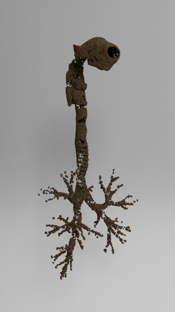 The following four audio files are extracted from breath sounds which were generated by a computer model simulating inhalation of opium smoke. Each file depicts one breath cycle. We developed the model for a sound installation titled Labour Lung (2021). The simulation model adopts algorithmic methods of calculation used in...